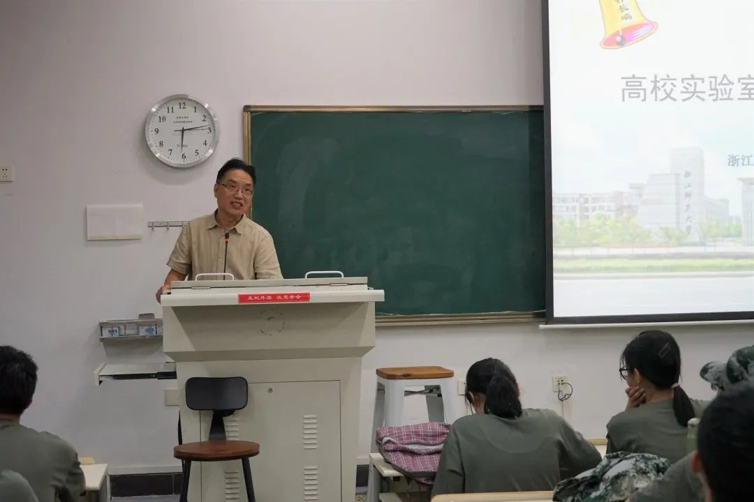 近日,化学与生命科学学院2021级新生实验室安全知识讲座于25幢教室举行。生化学院副院长肖孝辉、生化学院潘蕾与实验教学办朱沈嘉出席本次讲座,并为我院2021级本科生以及研究生宣讲实验室安全的相关注意事项。