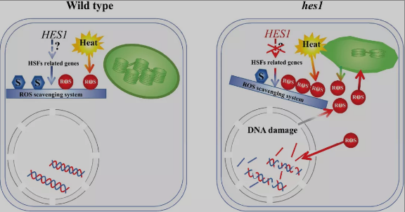 图3. HES1参与水稻对高温胁迫适应性的工作模型