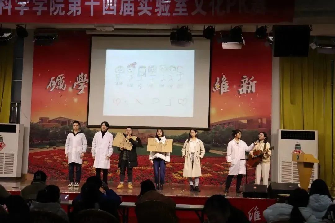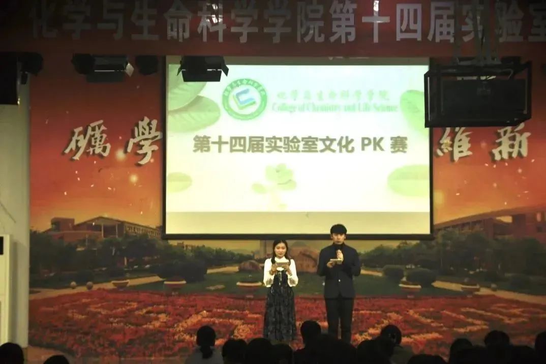 为展示实验室特色与文化,营造良好的学术氛围,生化学院第十四届实验室文化PK赛于12月3日晚在大学生活动中心一楼多功能厅成功举办,法政学院研会执行主席刘潇宇、人文学院研会执行主席杨艺、物电学院研会执行主席赵恒莉、非洲研究院研会执行主席叶睿杰、生化学院研会执行主席岳琳出席本次活动。章楚含和许涛主持活动。