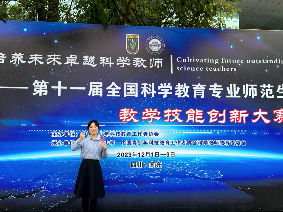 近日,第十一届全国科学教育专业师范生教学技能创新大赛(本科研究生赛道)决赛,在西华师范大学举办,浙江师范大学生命科学学院科学教育202班董译词同学斩获本科生组一等奖。