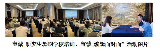 14日下午,会议邀请金勇丰理事长、施觉亮常务理事与新晋理事叶足研究员进行“宝诚-研究生暑期学校培训”。为了帮助会员更好地把研究成果写在祖国大地上,15日下午还举办了“宝诚-编辑面对面”活动。此次会议还邀请到7家企业代表做了产品推介报告。