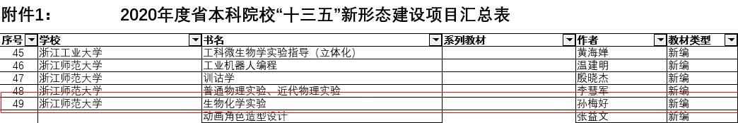 实验教材建设取得新突破--《生物化学实验》被认定为浙江省普通高校“十三五”新形态教材